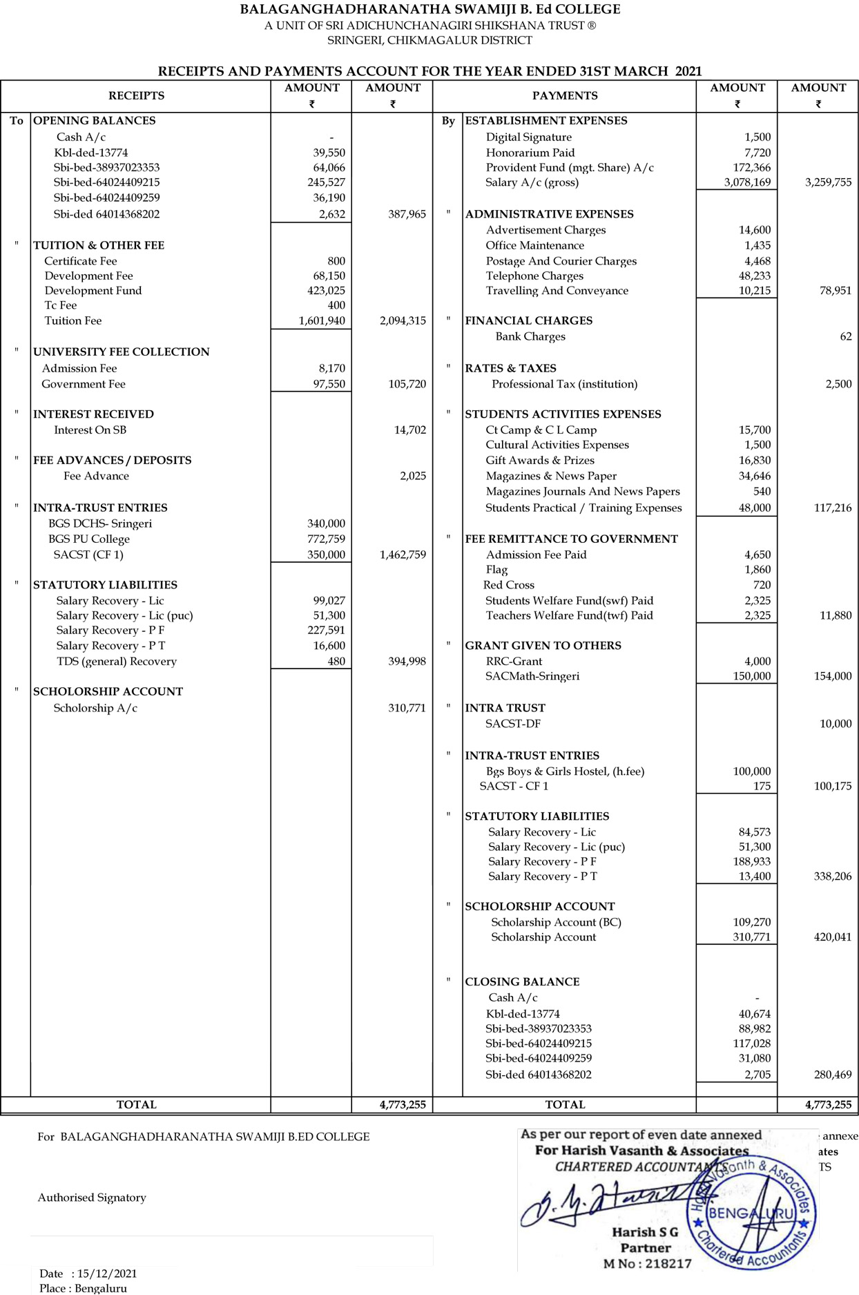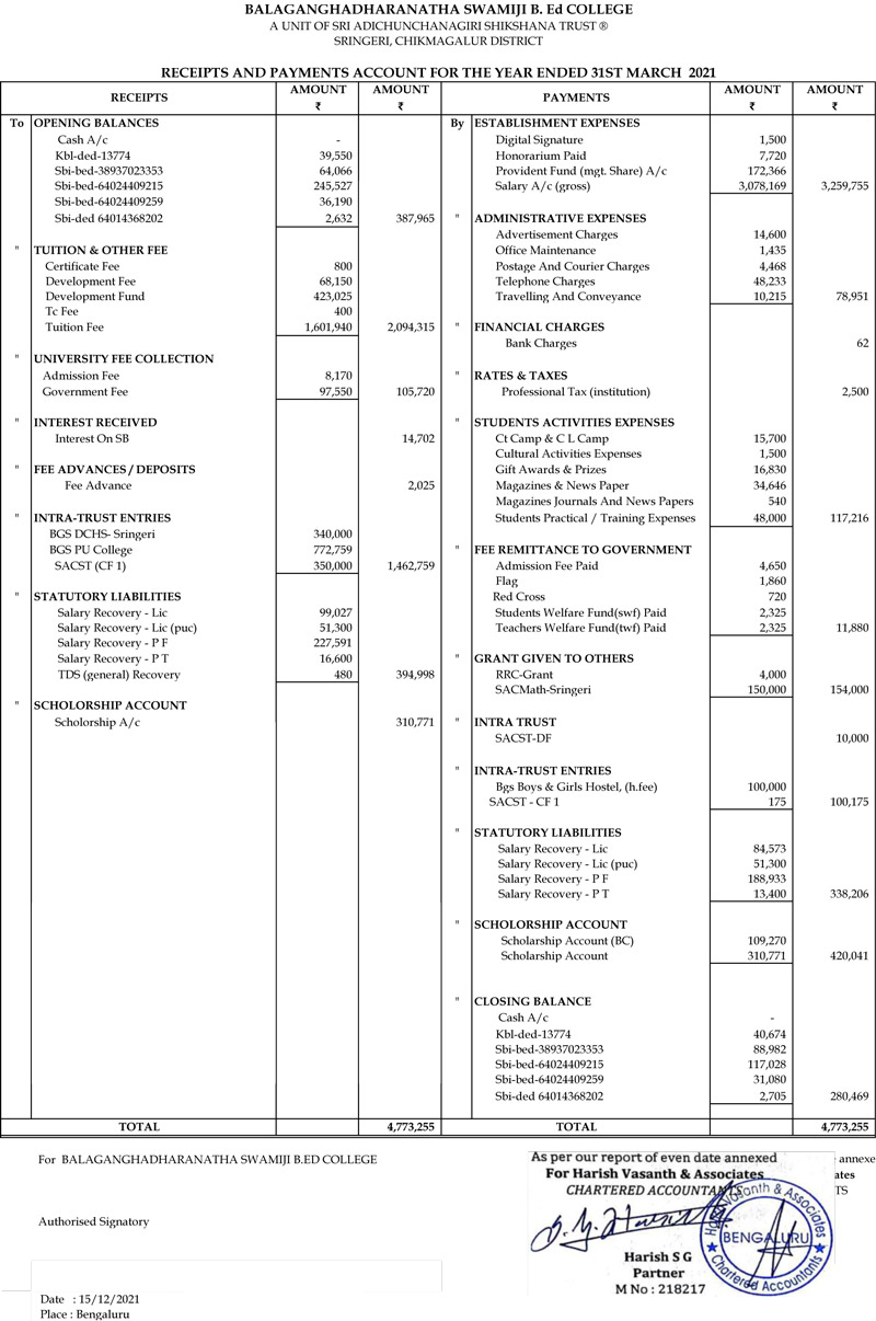 Receipts & Payment 2021-22